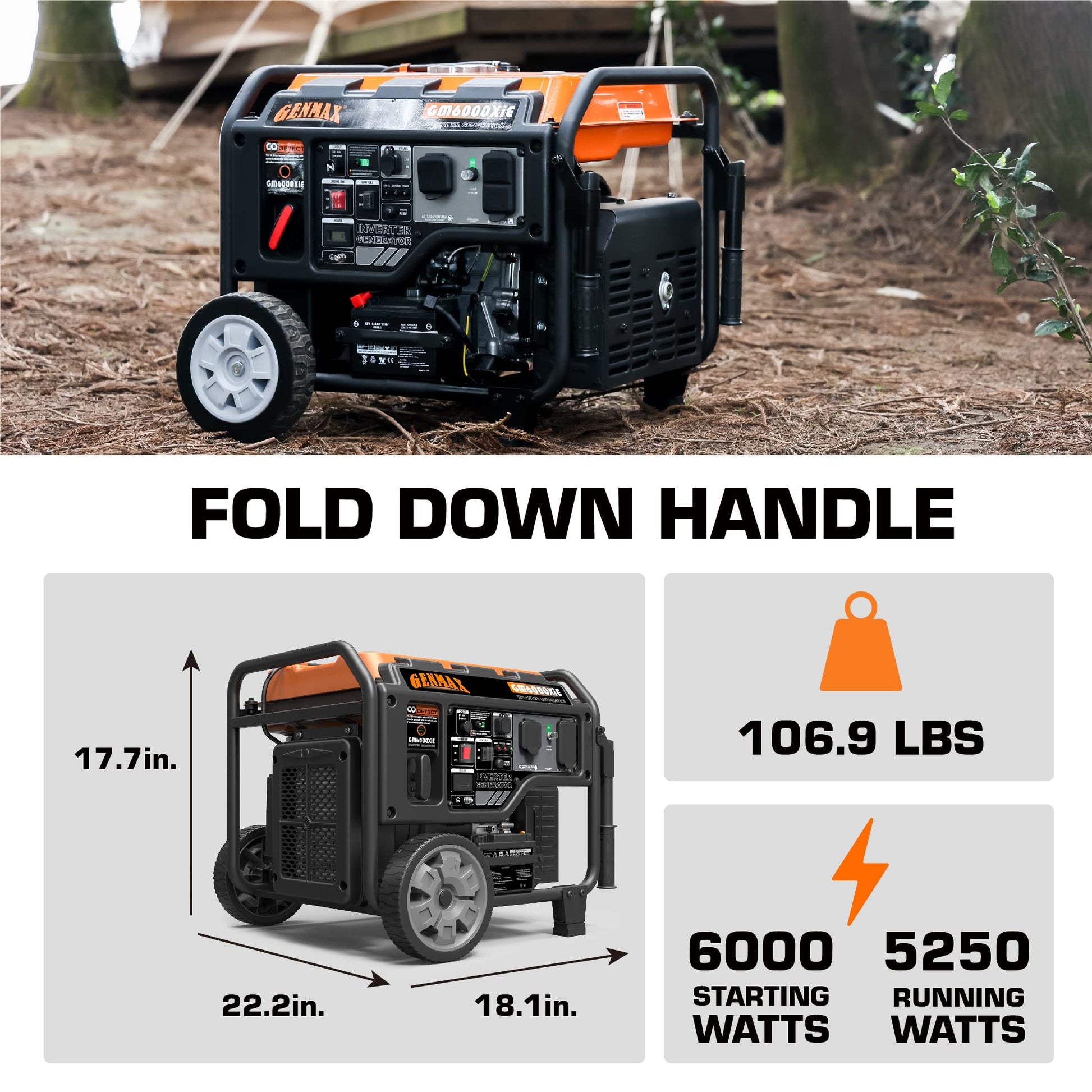 GENMAX GM6000XiE Inverter Generator, 6000W, Gas, Open Frame